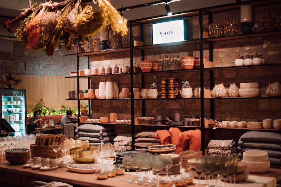 Garden is a Mediterranean restaurant, Shop a zero waste café as well as a gourmet deli, Studio offers Yoga classes every day of the week, House invites to cooking workshops and offers room for customized events.