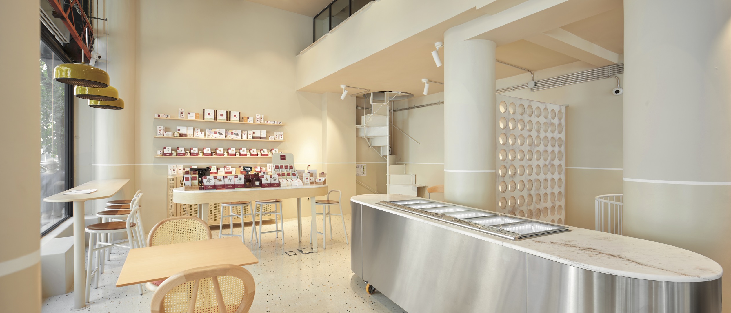 The Gelateria & Café Velocità is located on the city’s most important historic boulevard, the Calea Victoriei. To highlight both Italian flair and the former shine, a contemporary synthesis of Milan’s modernism and Art déco was developed.