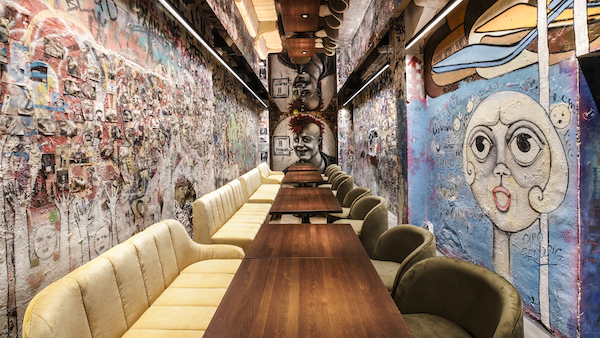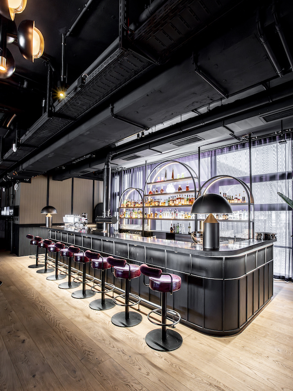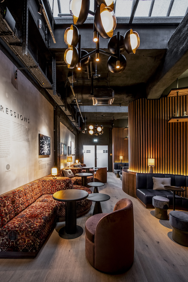 Studio Aisslinger has designed the interior as a liaison of old and new, in which layers of history overlap. It is not just the building that is a listed building. The graffiti that was created between 1990 and 2012 during its use as Kunsthaus Tacheles was also not allowed to be damaged.