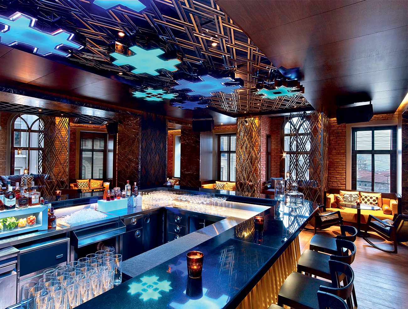 The entrance to the W Lounge has show character. It feels like a mirrored tunnel leading to the guiding theme of the lounge, which has been inspired by the golden days of the Ottoman empire. This has been jazzed up by modern technology gadgets. Not surprising that Istanbul’s avantgarde DJs love it here. The W-Cocktails add to the sensual experience.