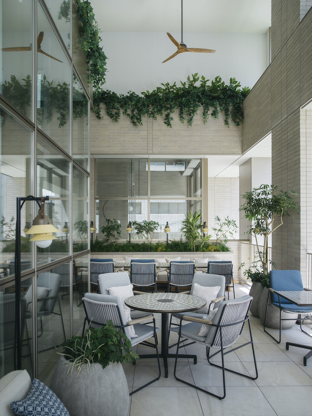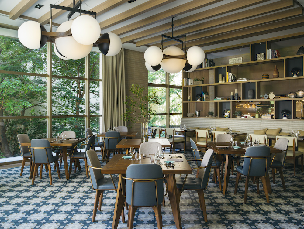 Bernerd refers elegantly to the surroundings with natural materials such as wood and Ceppo stone, while bricks and metal fixtures reflect the industrial heritage of Osaka. Regarding the furnishings, the designer was also inspired by culture, history and atmosphere of the city; a successful mix of mid-century furniture and pieces designed by her provide an authentic flair.