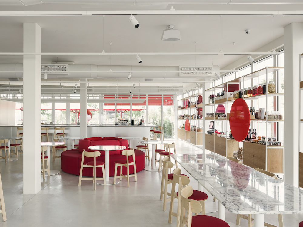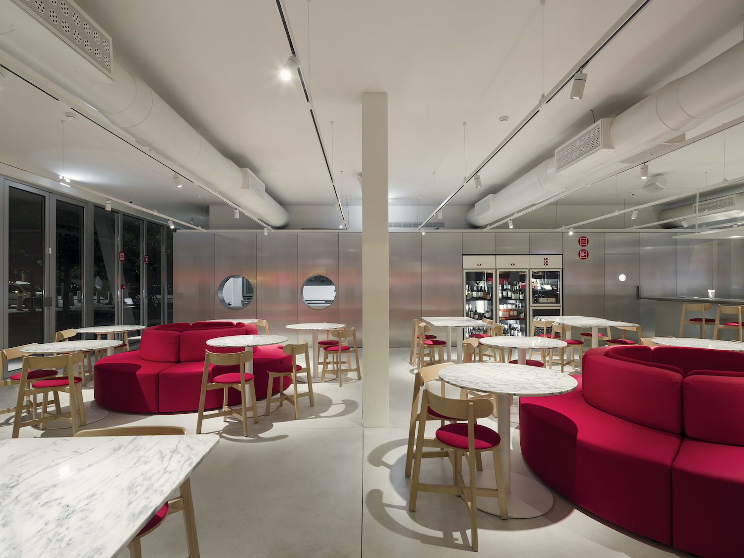 The striking red light at the entrance is by RPVP Designers, the styling by Peter Odegaard.